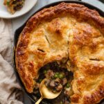 This Mushroom Pot Pie is a comforting, savory dish featuring a flaky puff pastry crust filled with a rich and creamy blend of sautéed cremini and oyster mushrooms, carrots, potatoes, and peas in a velvety cashew-based sauce. Perfect for a hearty vegetarian main course, this recipe balances deep umami flavors with fresh herbs and spices, baked to golden perfection.