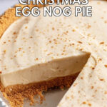 A creamy and festive No Bake Egg Nog Pie featuring a vanilla pudding and egg nog filling in a graham cracker crust, perfect for holiday celebrations or any cozy occasion.