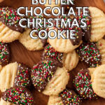 These Peanut Butter Christmas Cookies are a festive treat featuring a classic peanut butter cookie base dipped in melted semi-sweet chocolate and topped with holiday sprinkles. Soft, chewy, and decorated for the holidays, they make the perfect sweet snack or dessert for celebrations.