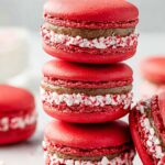 Delight in these festive Peppermint Chocolate Macarons featuring delicate almond meringue shells with a vibrant red hue and a smooth peppermint chocolate buttercream filling. Perfectly crisp on the outside and chewy inside, these macarons are topped with crushed candy canes for a refreshing holiday twist.