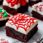 Delight in festive Red Velvet Brownies with a rich chocolate base infused with peppermint and classic red food coloring, topped with a creamy, spiced eggnog cream cheese frosting. Perfect for holiday celebrations and gatherings.