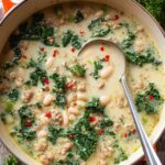 Sausage and White Bean Soup is a hearty and comforting dish perfect for cooler days. Made with savory sausage, tender white beans, and nutrient-rich kale, this soup combines rich flavors with a creamy broth enriched by heavy cream and Parmesan cheese. The addition of herbs and a hint of lemon juice brightens each bowl, making it a satisfying meal that’s fairly easy to prepare on the stovetop or in a slow cooker.