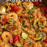 This Shrimp and Rice Skillet is a flavorful one-pan meal featuring tender shrimp, vibrant zucchini, cherry tomatoes, and seasoned rice cooked in a savory tomato and chicken broth base. Easy to prepare and perfect for a weeknight dinner, it offers a balanced blend of protein, veggies, and grains.