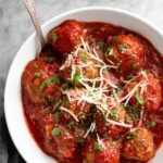 Freezing this recipe works like a charm. Just cool the meatballs and sauce completely, then freeze in portions either in a resealable bag or container. When you’re ready to eat, thaw overnight in the fridge and gently reheat.