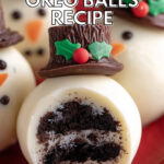 Delightful and festive Snowman Oreo Balls made with Oreo cookie crumbs, cream cheese, and coated in creamy white chocolate. Decorated with snowman-themed sprinkles and chocolate hats, these treats are perfect for holiday celebrations and fun desserts.