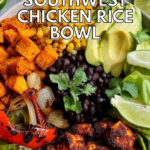 This Southwest Chicken Rice Bowl recipe features flavorful marinated chicken grilled to perfection, served over rice with a zesty black bean and corn salsa and drizzled with a creamy cilantro lime dressing. It's a vibrant and healthy meal perfect for lunch or dinner.