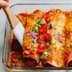 - Add Vegan Queso if Desired: If using vegan cashew queso, omit the shredded cheese and instead pour the warm queso over the enchiladas after baking.
