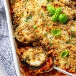 This Eggplant Casserole is a delicious and hearty dish featuring layers of roasted eggplant, flavorful marinara sauce, toasted panko breadcrumbs, and melted mozzarella and Parmesan cheeses. Perfect for a comforting vegetarian main course that's simple to prepare and bursting with Italian-inspired flavors.
