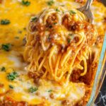 Mexican Spaghetti combines a flavorful taco-seasoned ground beef sauce with a creamy cheese sauce tossed into spaghetti, baked with extra cheese, and garnished with fresh cilantro for a comforting and delicious Tex-Mex inspired dinner.