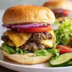 - Assemble the burgers. Spread 1 to 2 tablespoons of burger sauce on the bottom bun. Layer with fresh lettuce, the cooked cheeseburger patties, sliced tomato, and red onion. Top with the bun and serve immediately for best taste.