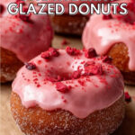 - Glaze and Garnish: Spoon the strawberry glaze over the tops of the donuts and garnish with extra freeze-dried strawberries. Serve and enjoy!