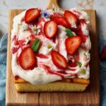 A delicate and fragrant Strawberry Rose Cake featuring layers of strawberry rose compote swirled into a moist cake, topped with creamy rose-scented cream cheese buttercream and fresh strawberries. Perfect as a snack or dessert with a beautiful floral twist.