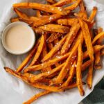 - Season and Serve: Remove the sweet potato fries from the oven, check seasoning, and add extra salt if needed. Serve the fries warm with the toasted marshmallow dip on the side for dipping.