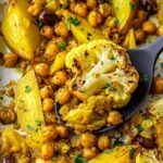 - Prep the veggies: Cut the cauliflower into florets. Slice the potatoes into thin, even wedges. Rinse and drain the chickpeas thoroughly. On a large baking sheet, combine the cauliflower, potatoes, chickpeas, and pitted olives. Pour the marinade over and toss gently until all pieces are evenly coated.