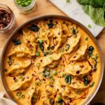 This viral one-pan Dumpling Bake combines frozen dumplings with a flavorful red curry coconut broth and fresh vegetables, baked until bubbly and slightly crisp. A comforting and easy meal served over jasmine rice or noodles, perfect for a quick and delicious dinner.