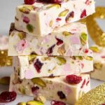 White Christmas Rocky Road is a festive no-bake dessert combining creamy white chocolate with chewy marshmallows, crunchy toasted pistachios, sweet glacé cherries, and unsweetened desiccated coconut. This delightfully textured treat is easy to prepare and perfect for holiday gifting or sharing at celebrations.